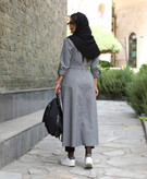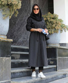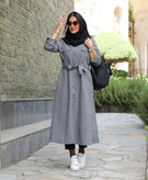 مانتو بلند جاو دکمه و کمربند دار (دانشجویی، اداری)