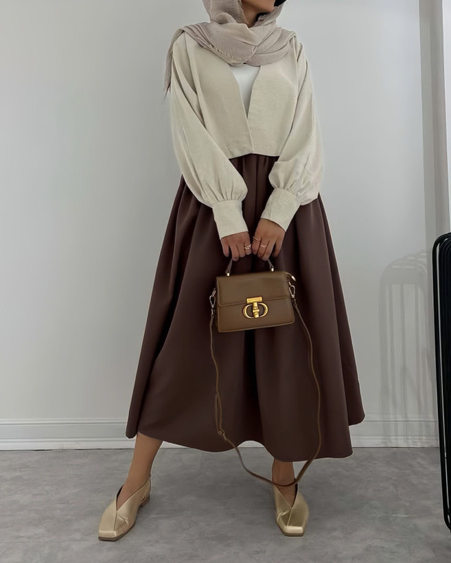 ست کت دامن و کمربند رنگ متضاد قد ۹۰cm