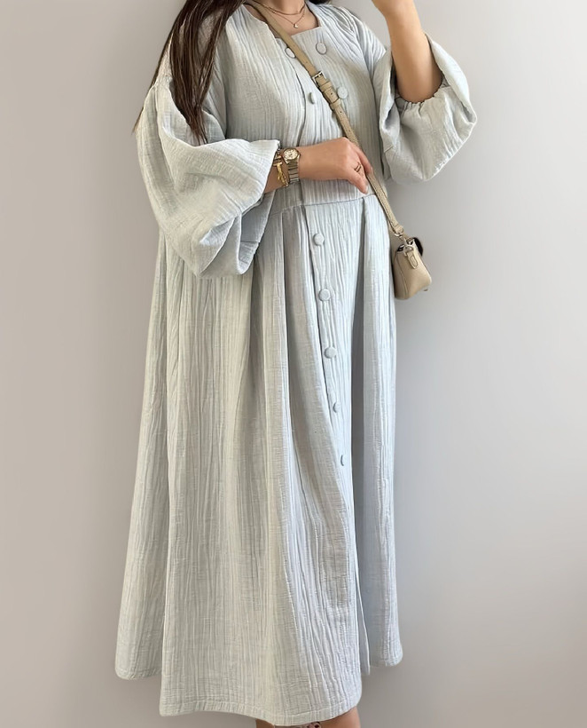 کفتان بلند طرح دکمه پشت زیپ فری سایز تا ۴۸