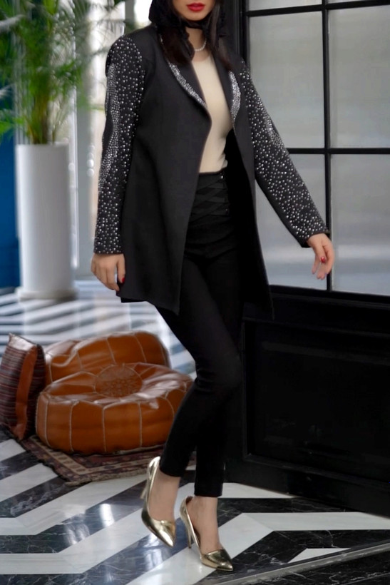 مانتو کتی مازراتی آستین و یقه نگین کاری شده 😍