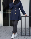 مانتو مشکی کلاسیک با دکمه های طلایی