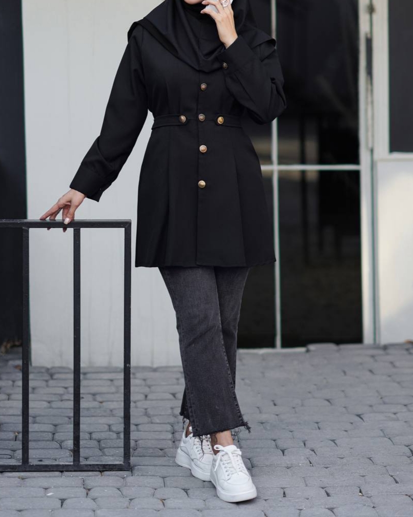 استایلی ساده ، شیک و همیشه مد با این مانتوی مشکی جذاب