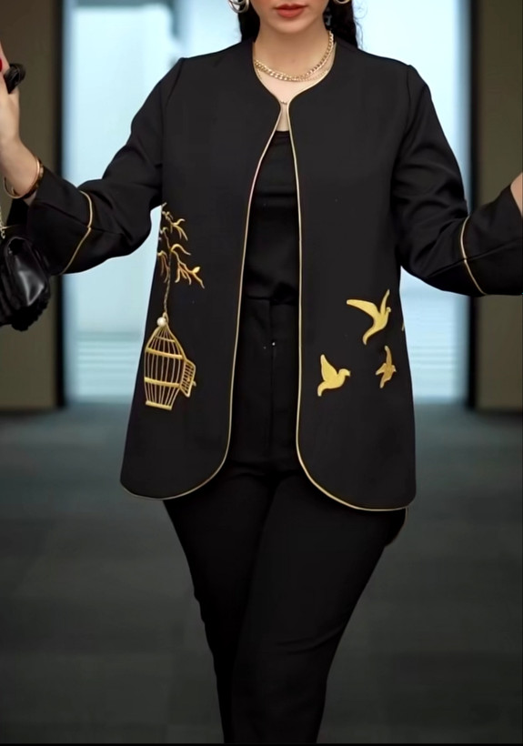 کت کوتاه کتان لمه، گلدوزی طرح پرنده و قفس