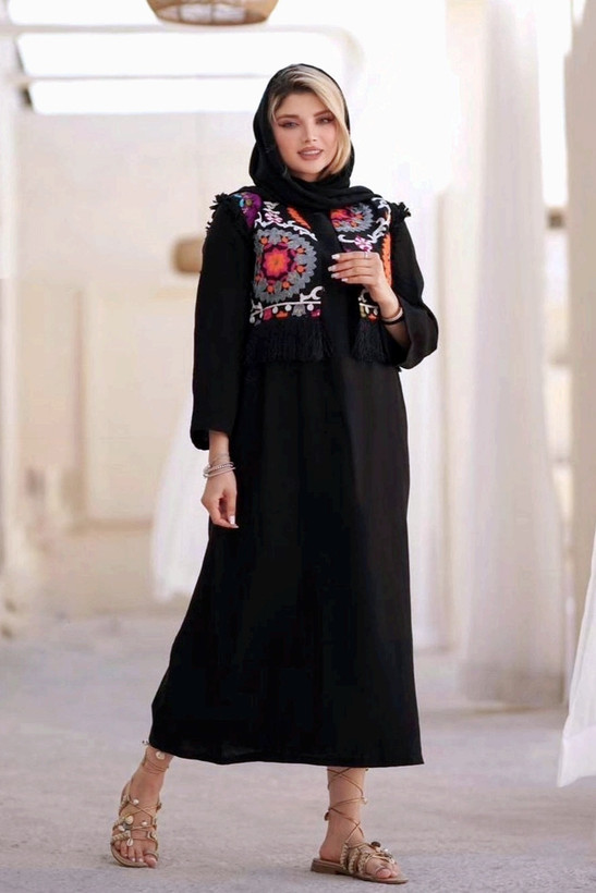 مانتو جلو بسته بلند وست خرج کار سنتی ریشه دار