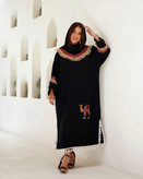مانتو پیراهنی کفتان بلند بغل چاک خرجکار(شتر اتویی چسبی🐫)+ ریش کنفی