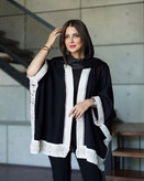 متاسفانه این کالا در حال حاضر موجود نیست. میتوانید از طریق لیست بالای صفحه، از محصولات مشابه این کالا دیدن نمایید.مانتو پانچ کوتاه مزونی خرجکار ریش 😋 جذاب و خنک و راحت ، پارچه کرسپو جت بلک وارداتی، مشکی برای مناسبت ها، فری سایز ۳۶ الی ۵۲، قد کار ۷۸cm میباشد.