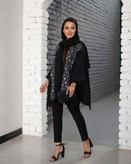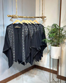 مانتو پانچ نوار ریش مشکی کرسپو خرجکار لینن طرحدار