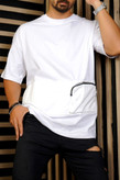 تیشرت یقه گرد نخ پنبه و فوم، جیب زیپی، آستین سه ربع