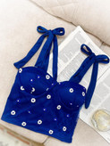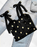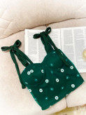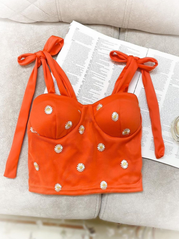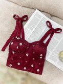 کراپ نیم تنه کاپدار گلدوزی طرح گل بابونه 🌼😍 یک جذاب دوست داشتنی، زیبا و با کیفیت،طرح گلها روی توری گلدوزی دوخته شده است و استر ریون کشی میباشد، قسمت سینه کاپدار، فری سایز مناسب سایز ۳۶ الی ۴۲ است.