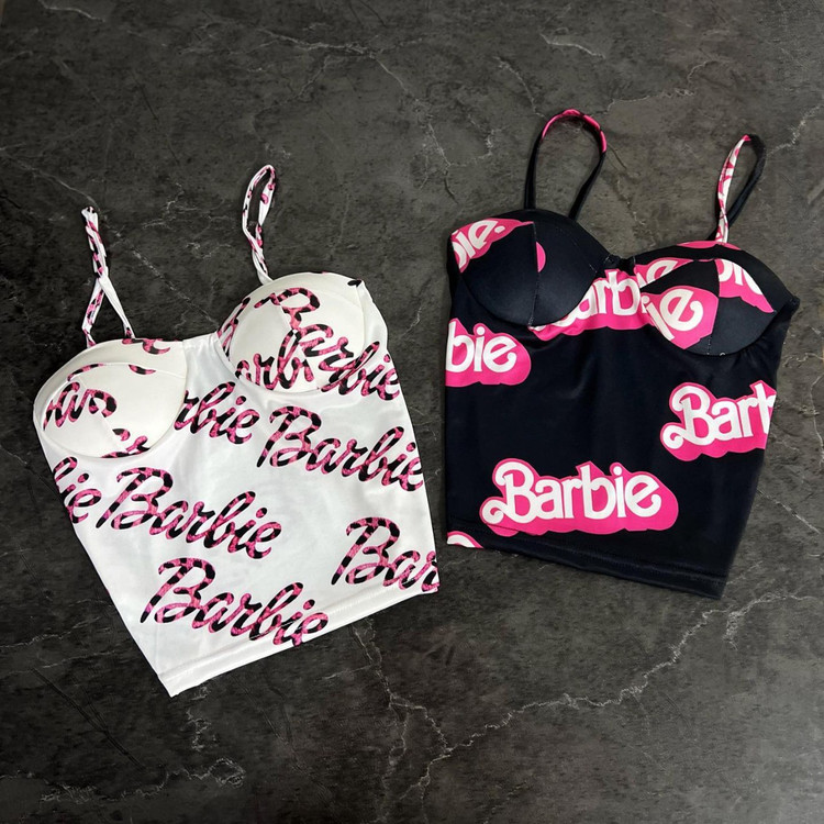کراپ تاپ نیم تنه کاپدار طرح باربی Barbie 👸