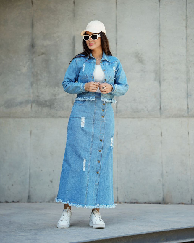 ست کت دامن جین پاییزه زاپ و ریش 😎