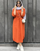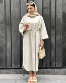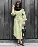 مانتو پیراهنی کفتان لینن کمر گت دار تک جیب