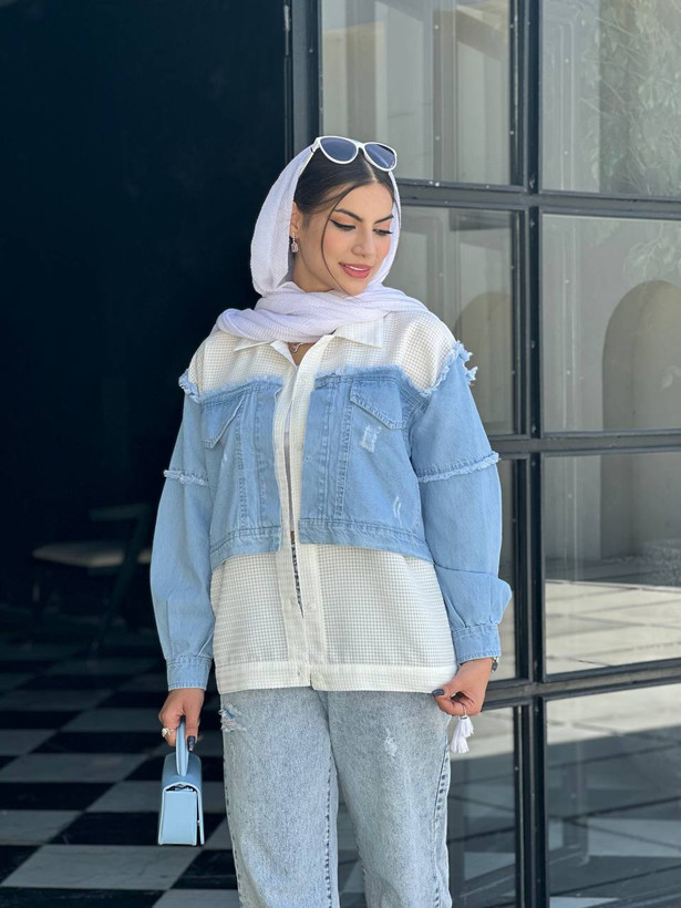 جنس پارچه : حصیری تابستانه ترکیب با جین بهاره کثیف دوزی