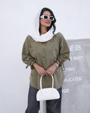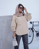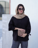 شومیز لینن جلو بسته یقه مردانه آستین چین بنددار