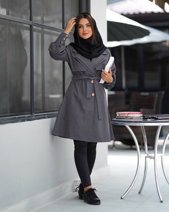 مانتو کوتاه راه راه دویقه آستین مچی (دانشجویی ، اداری)
