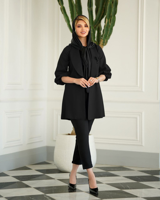 مانتو کرپ جلو غزن مشکی