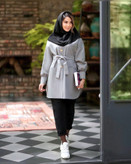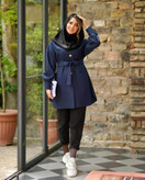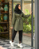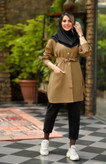 مانتو آستین مچی یقه مردانه جلو دکمه کمربندی (ارسال ۷ روز کاری)