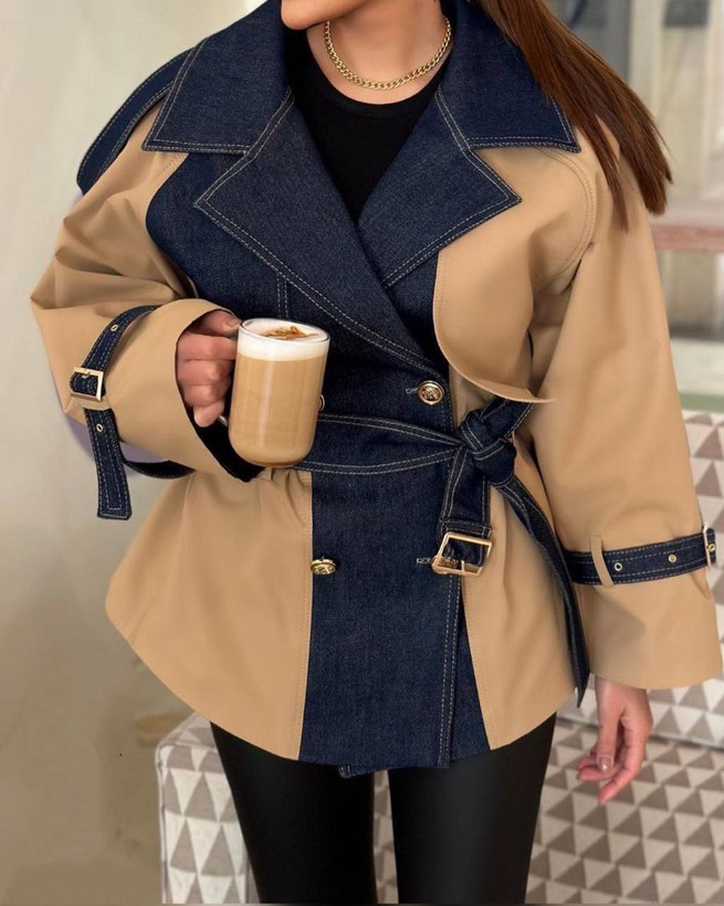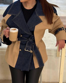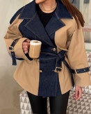 مانتو کتی ترکیبی کتان و جین کمر و آستین سگک