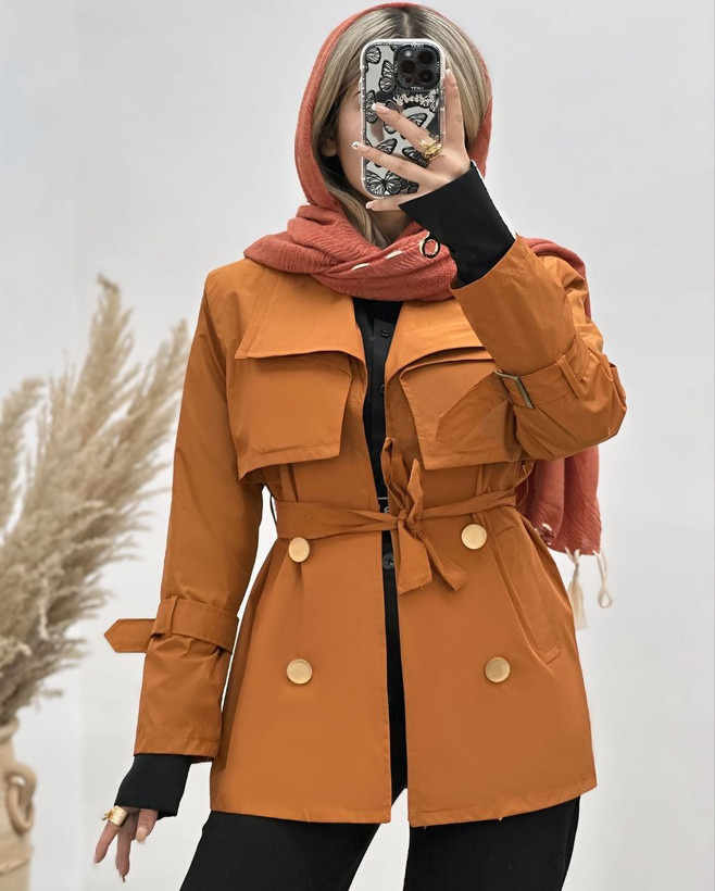 بارانی مموری کوتاه چهار دکمه کمربندی