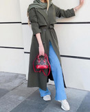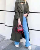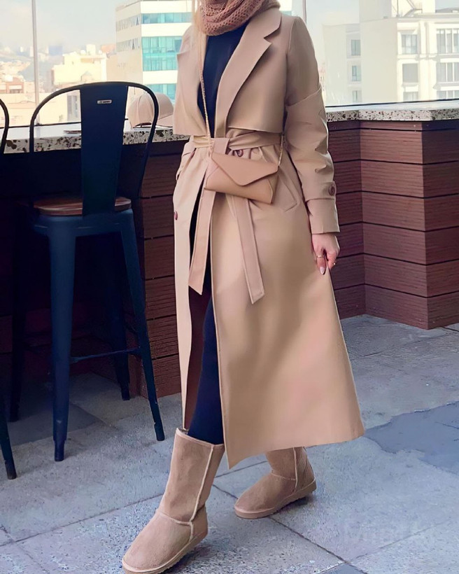 مانتو بلند پاییزه کمربندی جلو دکمه (ارسال ۷-۱۰ روز)