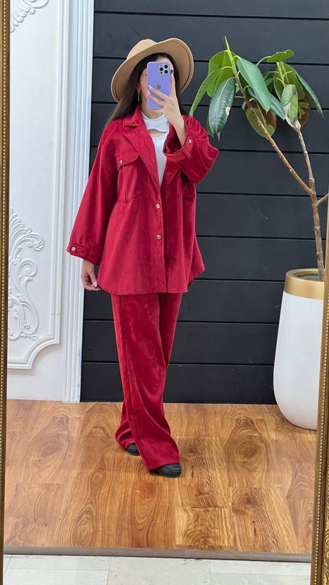 ست مانتو شلوار مخمل کبریتی 😍