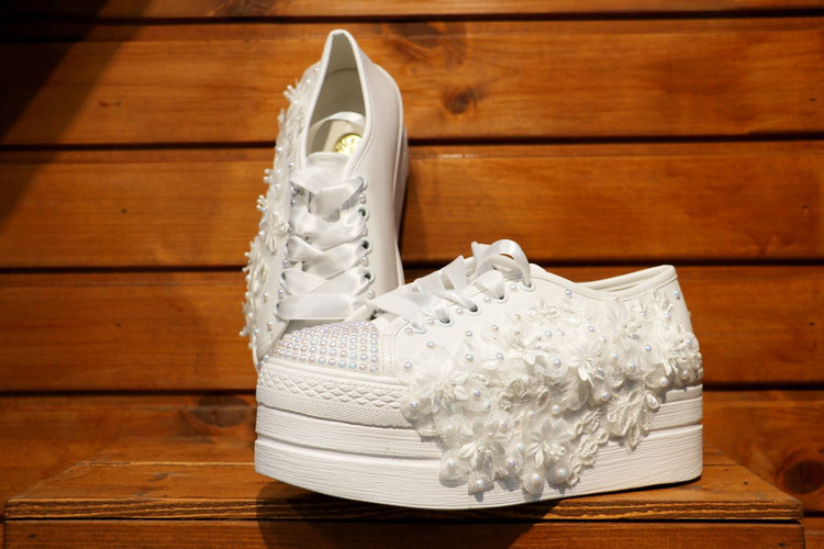 کفش کتونی عروس گلدوزی و مرواریدکاری لژ ۸ سانتی
