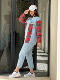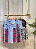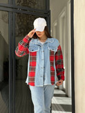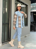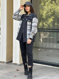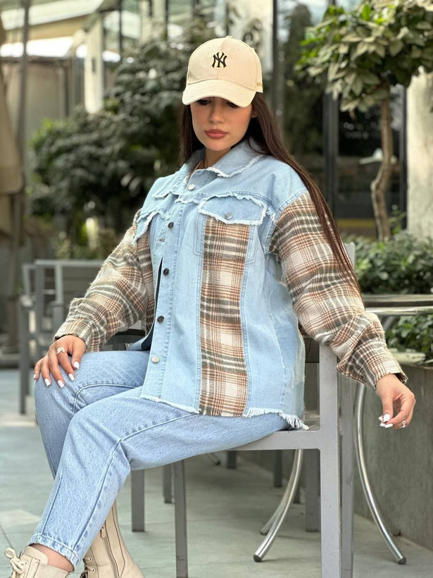 🔸 جین ترکیب با پشمی چهارخونه با کثیف دوزی های اسپرت