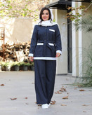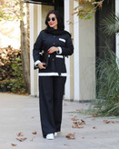 ست مانتو کتی و شلوار سر آستین و نواری سفید