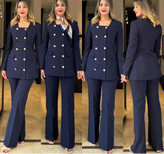 🗒️توضیحات :جیبها نما. جلوی کت تماماً لایه کوبی شده، کمربند اشانتیون ،باجابجایی دکمه ها قابلیت افزایش سایز داره ، شلوار بوتکات، پشت کمر شلوار کش داره.