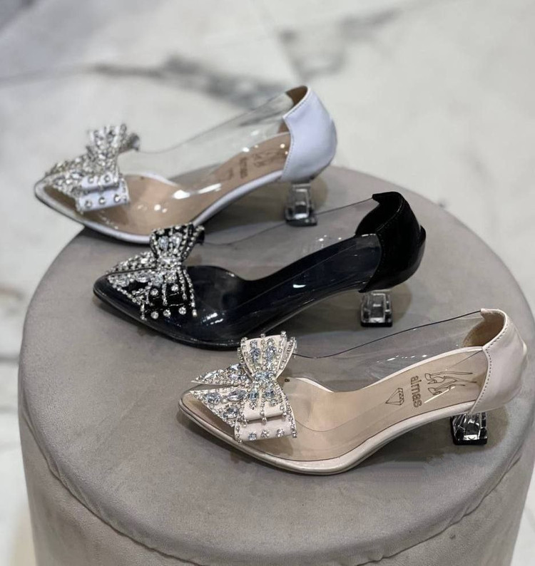 کفش مجلسی رویه شفاف پاپیون نگین کاری 5cm