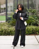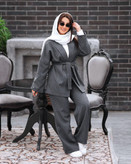 کت یقه آرشال کمربند دار و شلوار بگ راسته