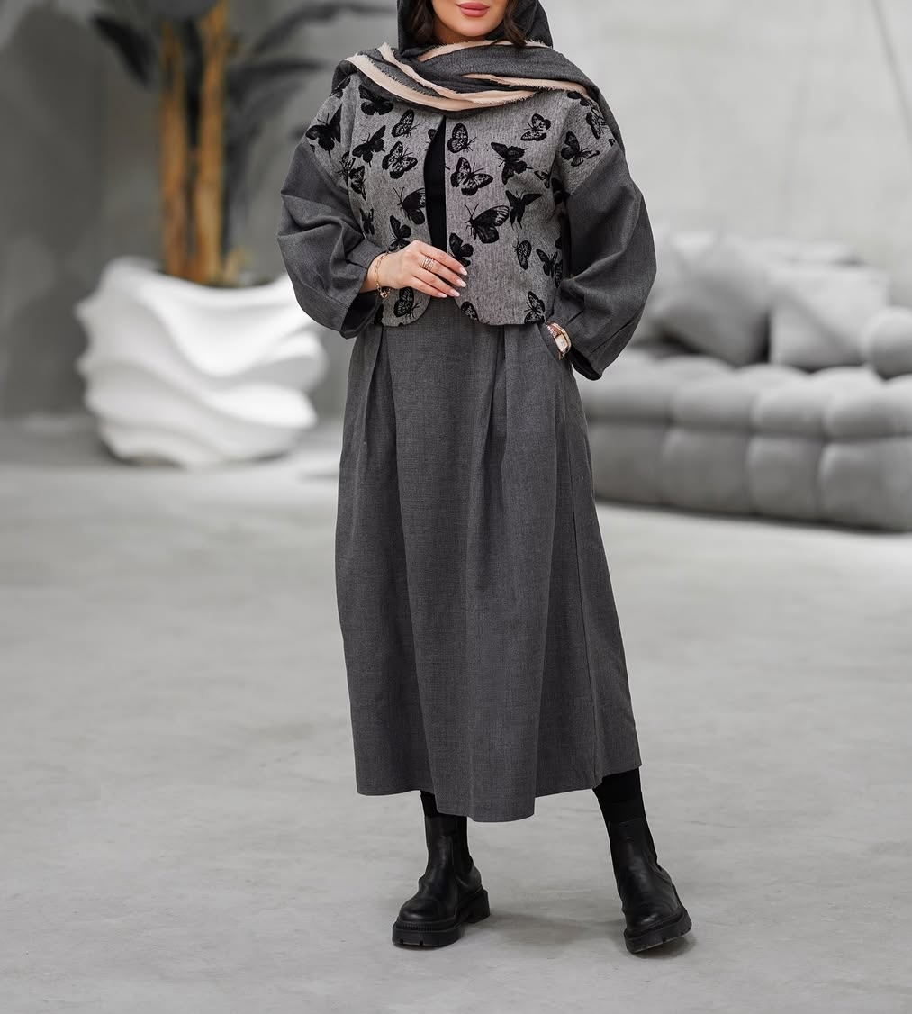 جنس پارچه : کت توییت و دامن پارچه پشمی تراکم پائین