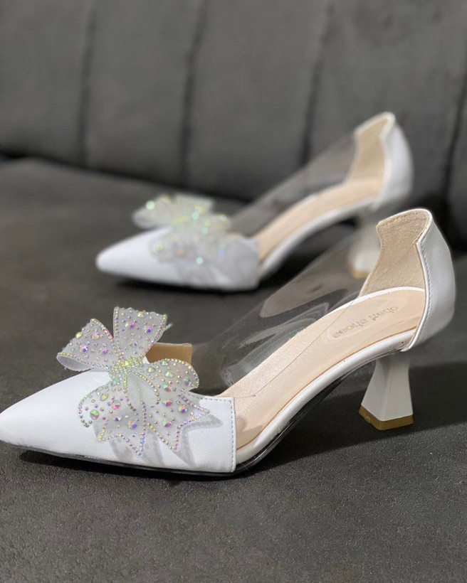 کفش مجلسی بغل شفاف پاپیون نگین کاری پاشنه ۶cm